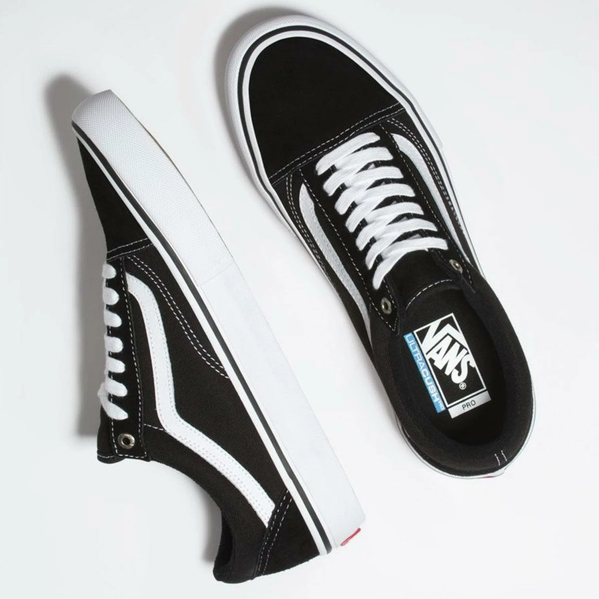 The Old Skool Pro, a Vans classic upgraded for enhanced performance, features sturdy canvas and suede uppers, single-wrap foxing tape, UltraCush HD sockliners to keep the foot close to the board while providing the highest level of impact cushioning, and Vans original waffle outsoles made of a rubber that offers grip and support. The Old Skool Pro also includes DURACAP reinforcement rubber underlays in high wear areas for unrivaled durability.